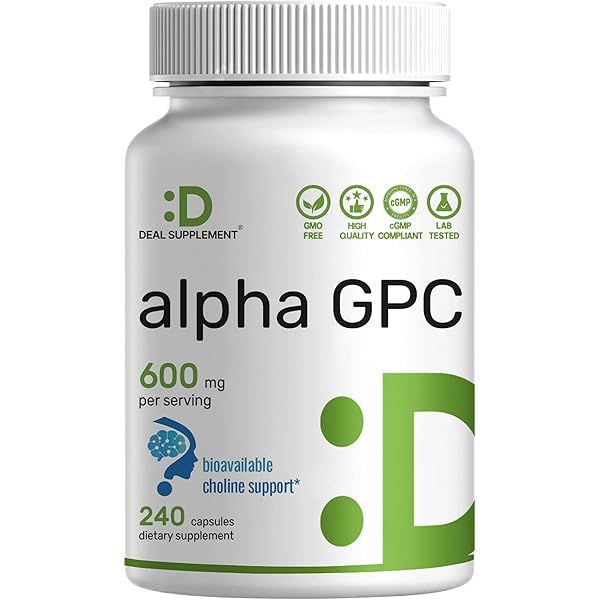 Alpha GPC 600mg Per Serving, 240 Capsules – Bioavailable Choline Replenishment –Nootropic Brain Health Supplements for Memory and Focus – Non-GMO, Gluten Free