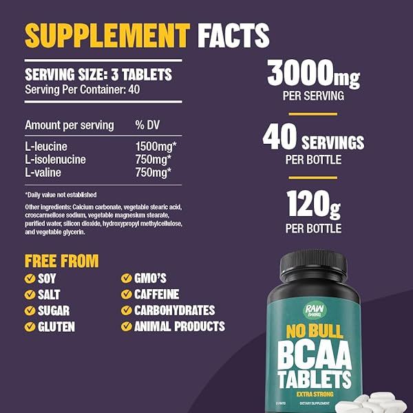 BCAA Tablets 1000 mg - Branched Chain Amino Acids Supplement for Muscle Recovery & Energy - Pre or Post Workout BCAAs for Men & Women - 120 Pills - Natural, Pure, GMO Free