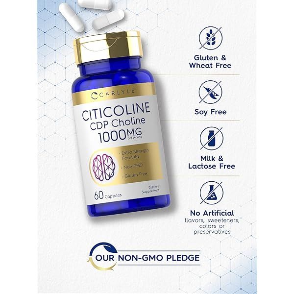 Carlyle Citicoline CDP Choline 1000mg | 60 Capsules | Extra Strength Formula | Non-GMO, Gluten Free Supplement