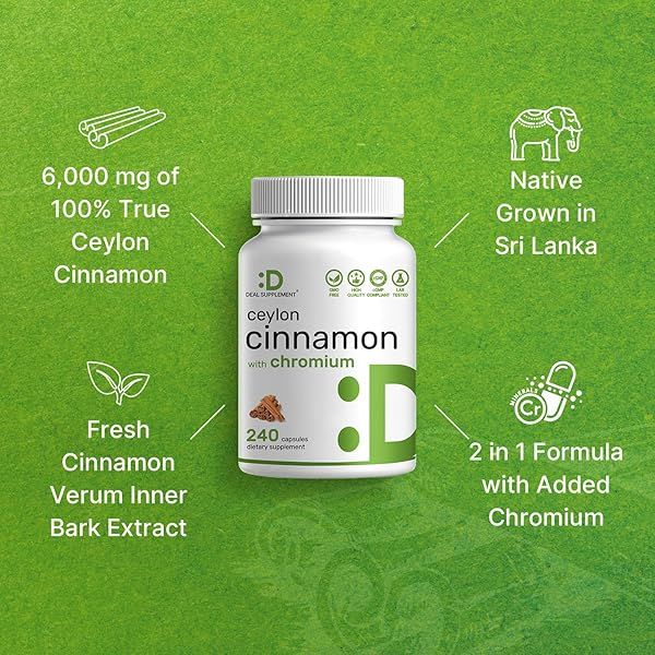 Ceylon Cinnamon with Chromium 1000mcg, 240 Capsules | Active Inner Bark Extract, True Sri Lanka Source | Natural Cinnamon Supplements