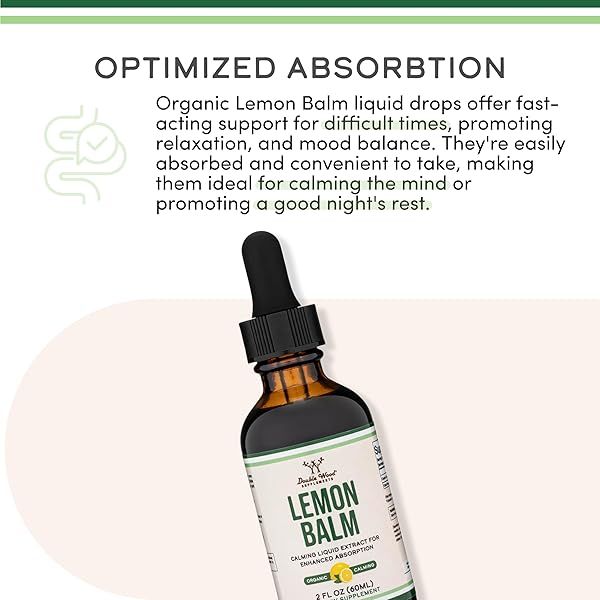 Double Wood Supplements Organic Lemon Balm Tincture - for Digestion & Relaxation 590mg - 2FL OZ, 120 Servings (Better Absorbed Than Capsules, Great for Lemon Balm Tea)