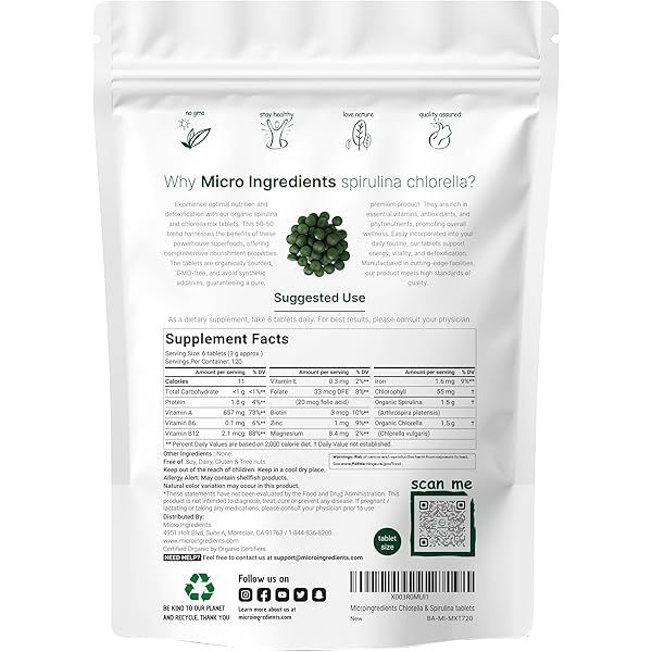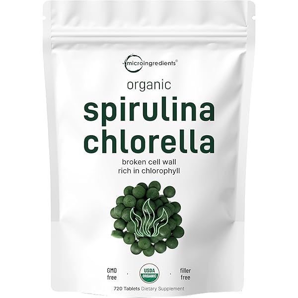 Micro Ingredients Organic Spirulina Chlorella Tablets, 720 Tablets (4 Month Supply) | 50/50 Blend Superfood | Cracked Cell Wall for Better Absorption | Rich in Vegan Protein & Chlorophyll