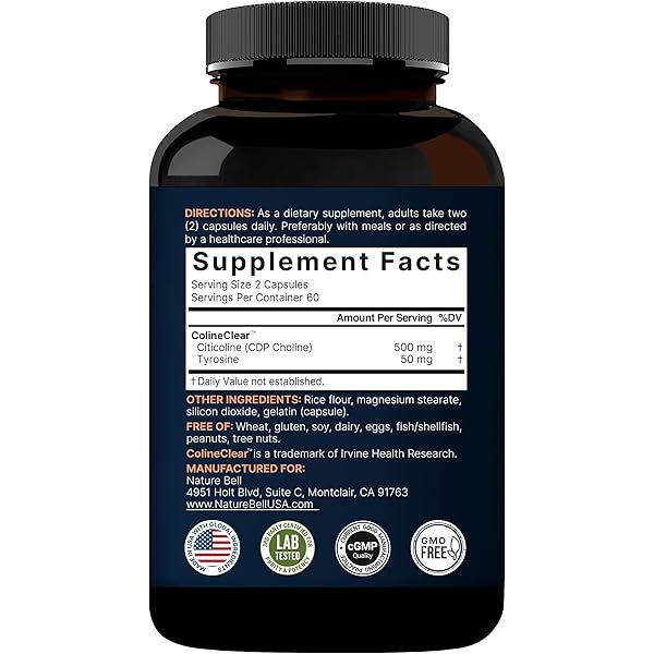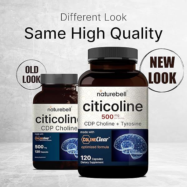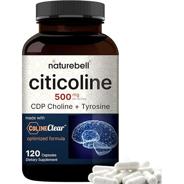 NatureBell Citicoline Supplements, CDP Choline, Citicoline 500mg Plus Tyrosine 50mg Per Serving, Optimized Dosage, 120 Capsules, 2 in 1 Formula, Dual Action Brain Supplement, Non-GMO