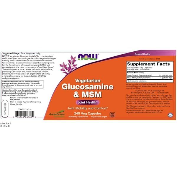NowFoods Vegetarian Glucosamine & MSM Joint Health 240 Veg Capsules