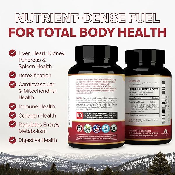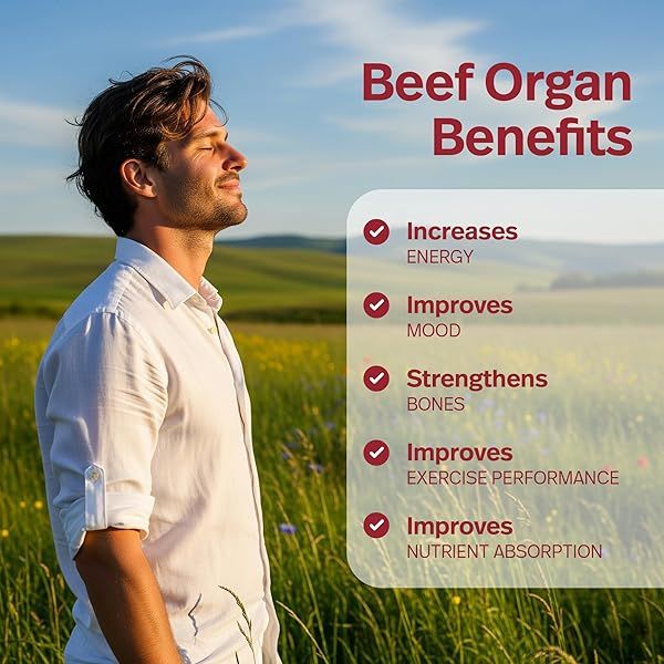 Premium Grass Fed Beef Organ Supplement for Women & Men with Beef Liver, Heart, Kidney, Pancreas & Spleen Capsules | Carnivore Diet | Non-GMO Freeze Dried & Desiccated Liver Pills Complex | 200 Count