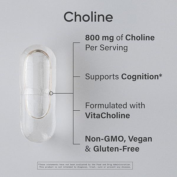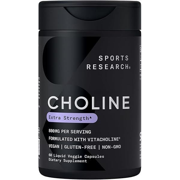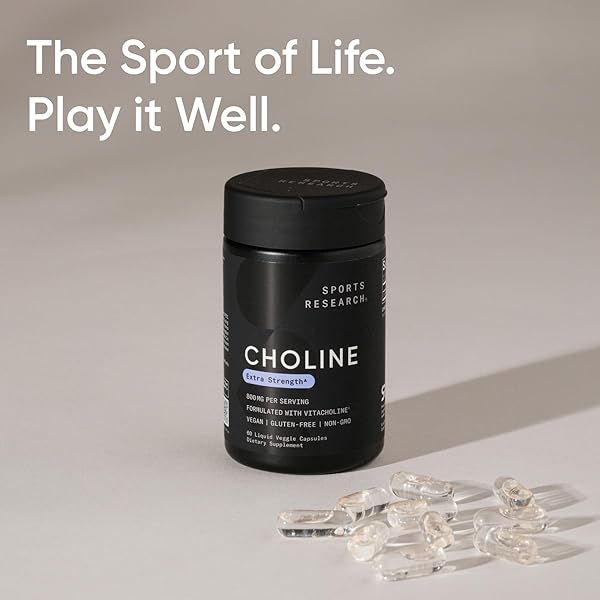 Sports Research® Extra Strength Choline 800 mg - Essential Nutrient Featuring VitaCholine® for Focus Support - Vegan Certified · Non-GMO · Gluten Free - 60 Liquid Capsules