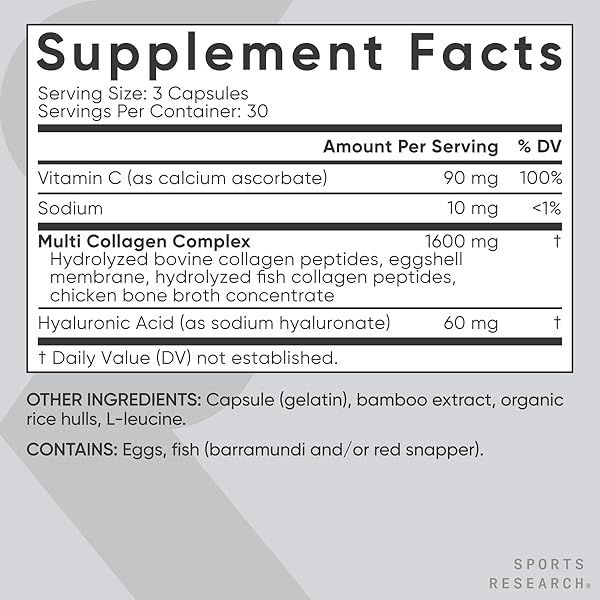 Sports Research® Multi Collagen Pills for Women & Men - Collagen Peptides (Type I, II, III, V, X) Enhanced with Hyaluronic Acid & Vitamin C - Gluten Free ­· Non-GMO - 90 Capsules